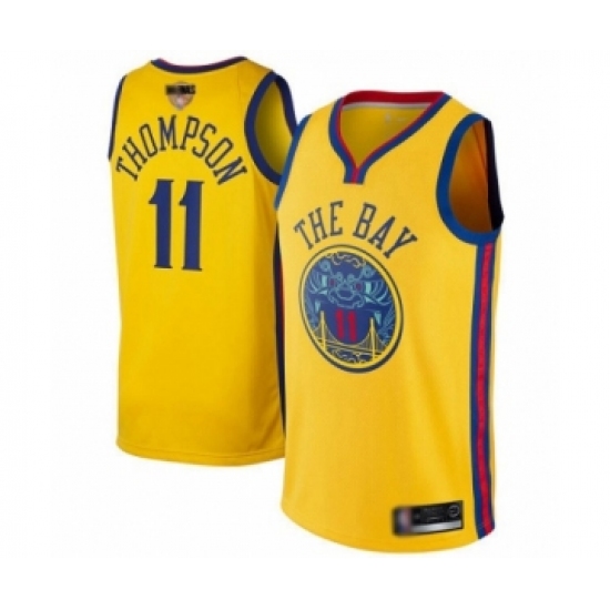 >Men's Golden State Warriors #11 Klay Thompson Swingman Gold 2019 Basketball Finals Bound Basketball Jersey - City Edition