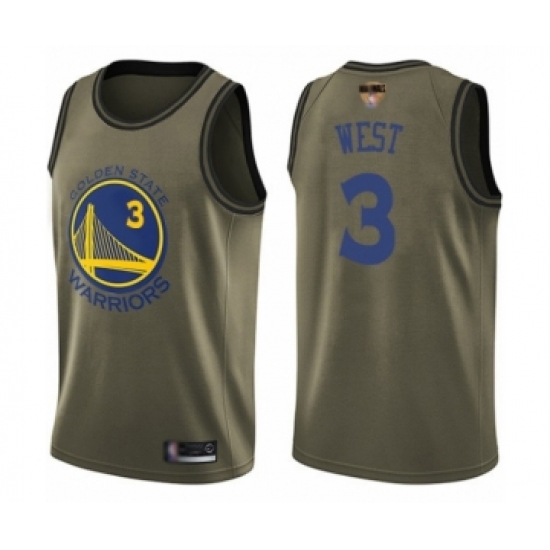 >Men's Golden State Warriors #3 David West Swingman Green Salute to Service 2019 Basketball Finals Bound Basketball Jersey