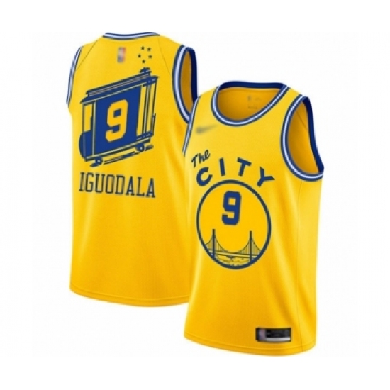 >Men's Golden State Warriors #9 Andre Iguodala Authentic Gold Hardwood Classics Basketball Jersey - The City Classic Edition