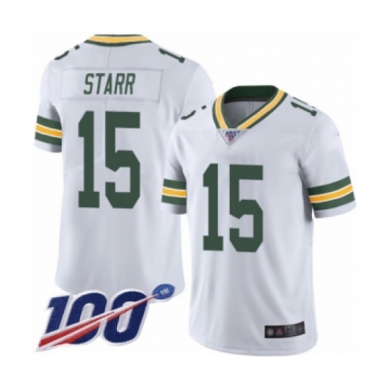 Men's Green Bay Packers #15 Bart Starr White Vapor Untouchable Limited Player 100th Season Football Jersey