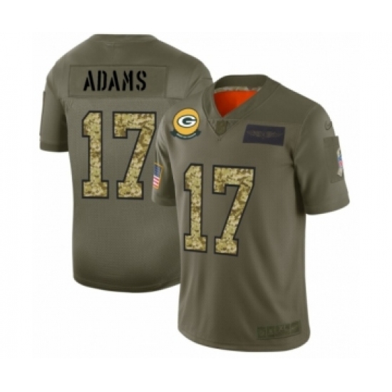 >Men's Green Bay Packers #17 Davante Adams 2019 Olive Camo Salute to Service Limited Jersey