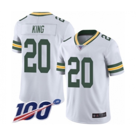 >Men's Green Bay Packers #20 Kevin King White Vapor Untouchable Limited Player 100th Season Football Jersey