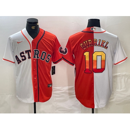 Men's Houston Astros #10 Yuli Gurriel White Orange Split Stitched Baseball Jersey