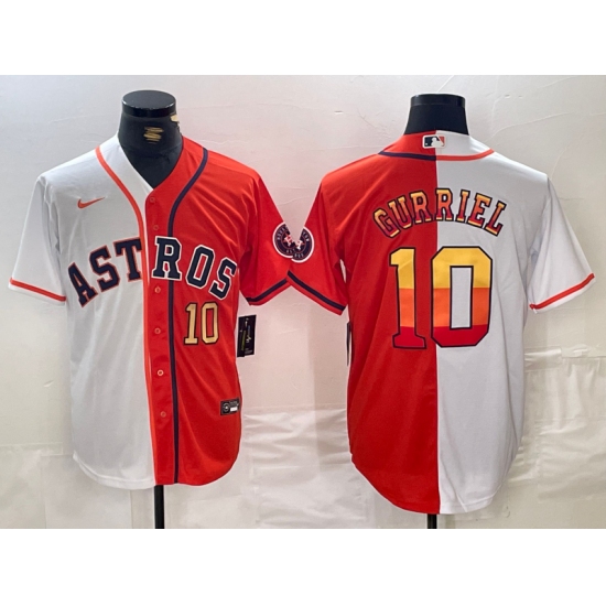 Men's Houston Astros #10 Yuli Gurriel White Orange Split Stitched Baseball Jerseys