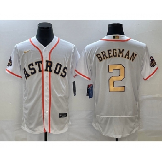 Men's Houston Astros #2 Alex Bregman 2023 White Gold World Serise Champions Flex Base Stitched Jersey