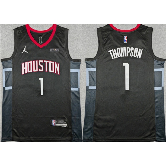 Men's Houston Rockets #1 Amen Thompson Black Statement Edition Stitched Jersey