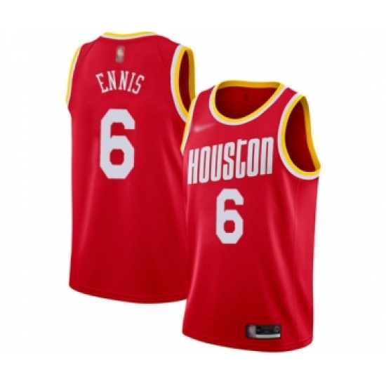>Men's Houston Rockets #6 Tyler Ennis Authentic Red Hardwood Classics Finished Basketball Jersey
