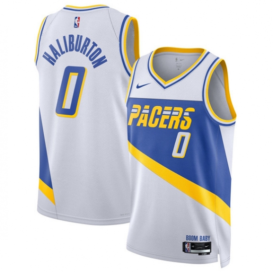Men's Indiana Pacers #0 Tyrese Haliburton White 2025 Finals City Edition Stitched Basketball Jersey
