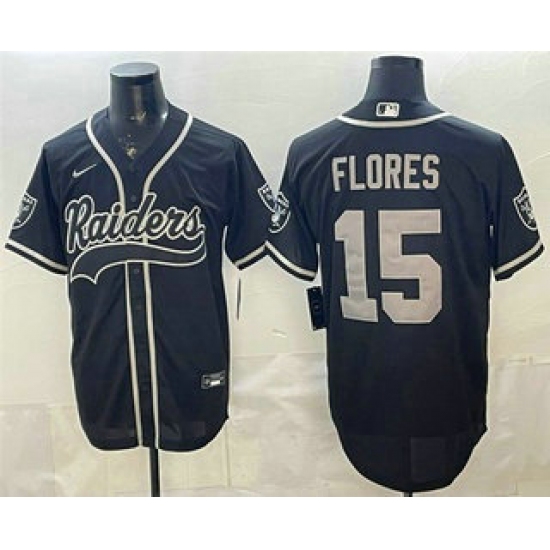 >Men's Las Vegas Raiders #15 Tom Flores Black Cool Base Stitched Baseball Jersey