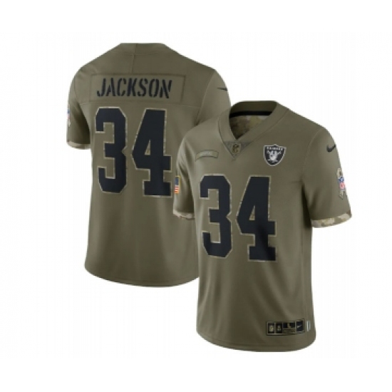 Men's Las Vegas Raiders #34 Bo Jackson 2022 Olive Salute To Service Limited Stitched Jersey