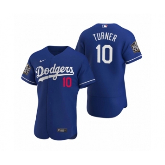 Men's Los Angeles Dodgers #10 Justin Turner Nike Royal 2020 World Series Authentic Jersey