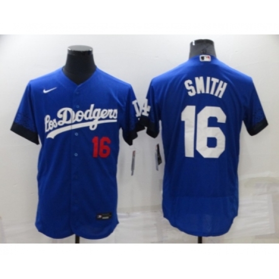Men's Los Angeles Dodgers #16 Will Smith 2021 Royal City Connect Flex Base Stitched Baseball Jersey