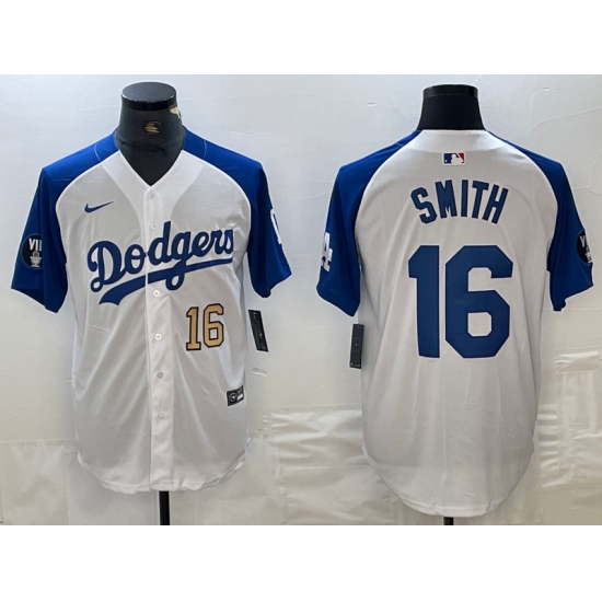 Men's Los Angeles Dodgers #16 Will Smith Number White Blue Fashion Stitched Cool Base Limited Jersey