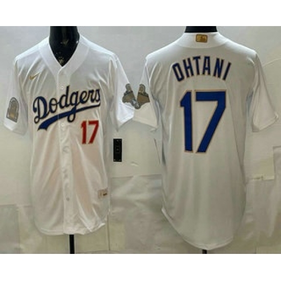 Men's Los Angeles Dodgers #17 Shohei Ohtani White Gold World Series Champions Collection Limited Jersey