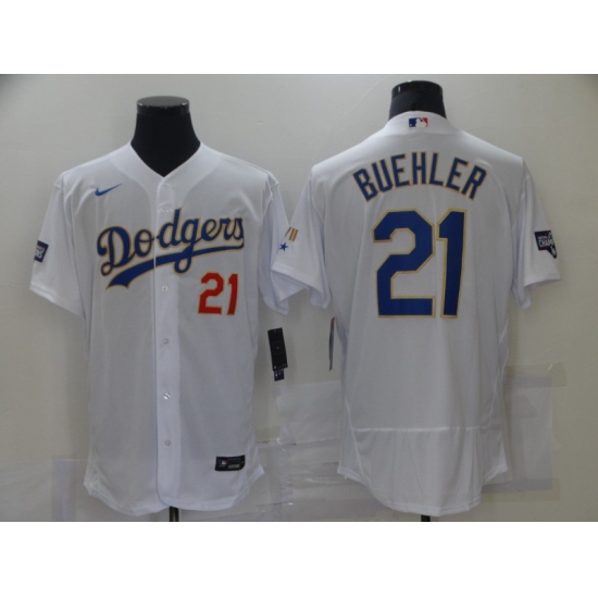 >Men's Los Angeles Dodgers #21 Walker Buehl White Nike World Series Champions Authentic Jersey