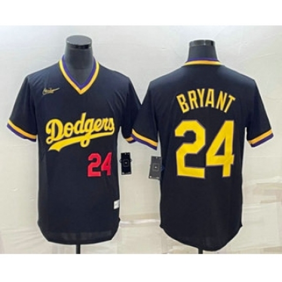 Men's Los Angeles Dodgers Front #8 Back #24 Kobe Bryant Black Gold Stitched Jersey