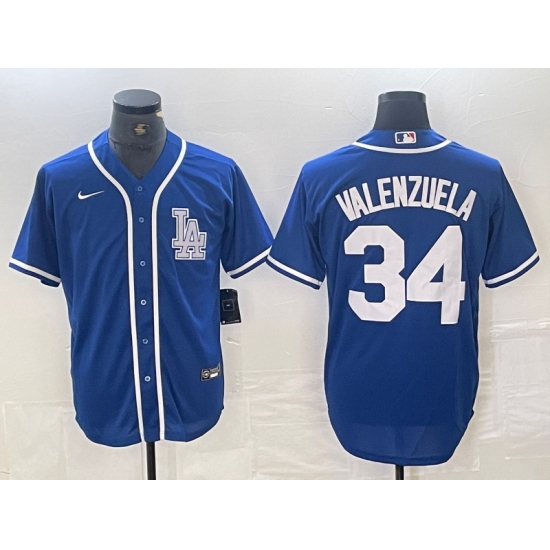 Men's Los Angeles Dodgers #34 Toro Valenzuela Blue Cool Base Stitched Baseball Jersey