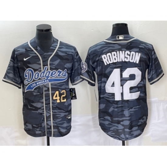 Men's Los Angeles Dodgers #42 Jackie Robinson Number Grey Camo Cool Base Stitched Baseball Jersey