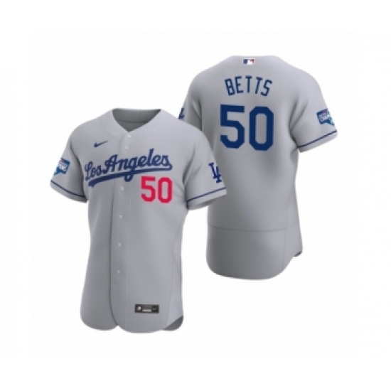 Men's Los Angeles Dodgers #50 Mookie Betts Gray 2020 World Series Champions Road Authentic Jersey