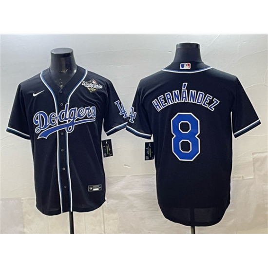 >Men's Los Angeles Dodgers #8 Enrique Hernández Black Fashion 2025 World Series Cool Base Stitched Baseball Jersey