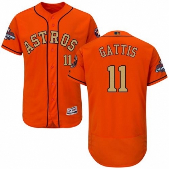 Men's Majestic Houston Astros #11 Evan Gattis Orange Alternate 2018 Gold Program Flex Base Authentic Collection MLB Jersey