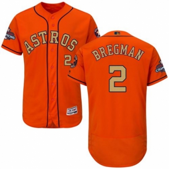 Men's Majestic Houston Astros #2 Alex Bregman Authentic Orange Alternate 2017 World Series Champions Flex Base MLB Jersey