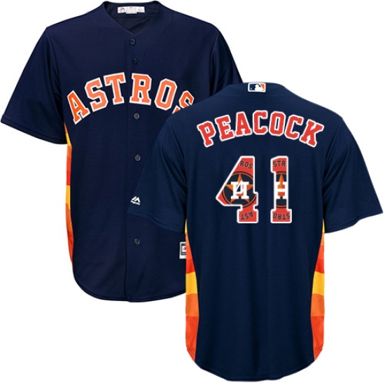 Home>MLB>Houston Astros>Brad Peacock>Men's Majestic Houston Astros #41 Brad Peacock Authentic Navy Blue Team Logo Fashion Cool Base MLB Jersey