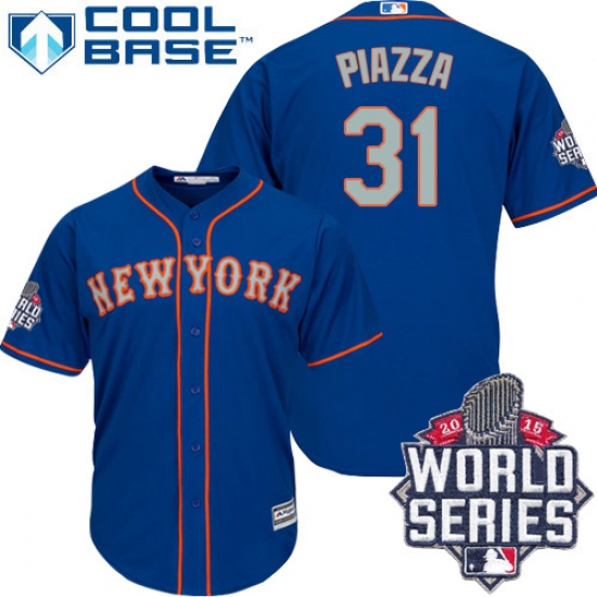 Home>MLB>New York Mets>Mike Piazza>Men's Majestic New York Mets #31 Mike Piazza Authentic Royal Blue Alternate Road Cool Base 2015 World Series MLB Jersey