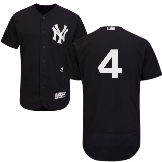 Home>MLB>New York Yankees>Lou Gehrig>Men's Majestic New York Yankees #4 Lou Gehrig Navy Blue Alternate Flex Base Authentic Collection MLB Jersey