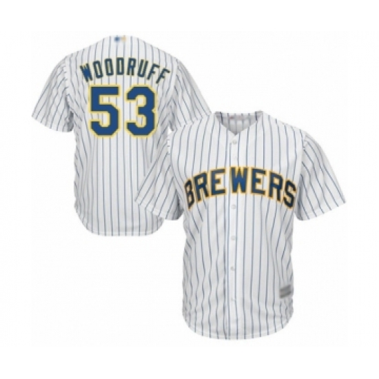 Men's Milwaukee Brewers #53 Brandon Woodruff Replica White Home Cool Base Baseball Jersey