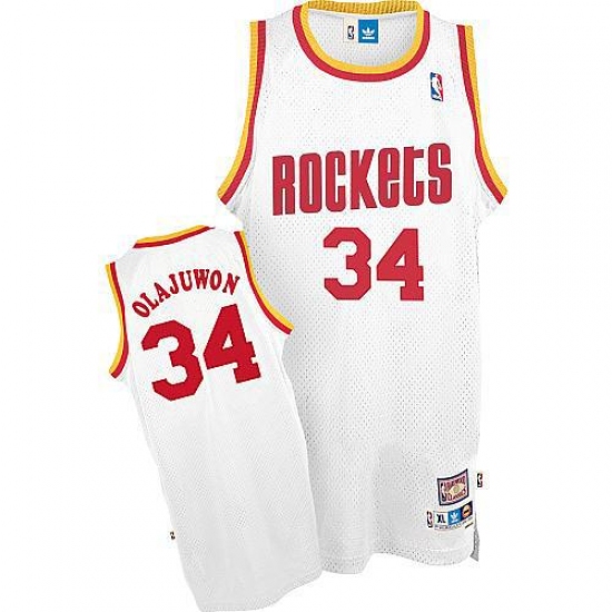 Men's Mitchell and Ness Houston Rockets #34 Hakeem Olajuwon Swingman White Throwback NBA Jersey
