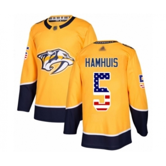 >Men's Nashville Predators #5 Dan Hamhuis Authentic Gold USA Flag Fashion Hockey Jersey
