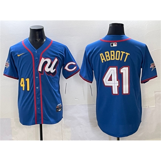 >Men's National League #41 Andrew Abbott Blue 2025 All-Star Edition Limited Stitched Baseball Jersey