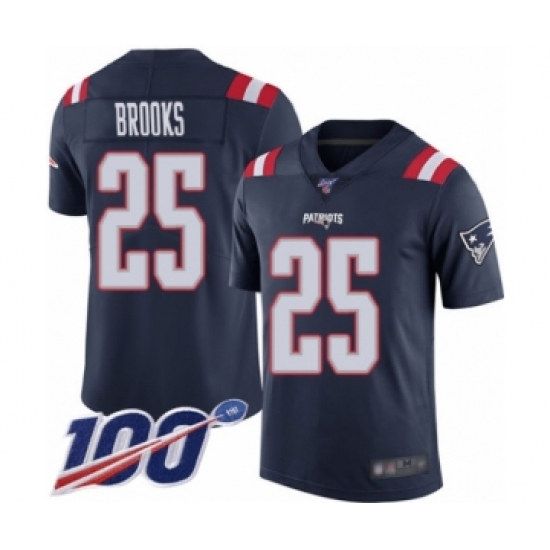 >Men's New England Patriots #25 Terrence Brooks Limited Navy Blue Rush Vapor Untouchable 100th Season Football Jersey