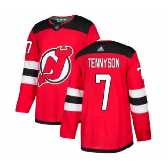 >Men's New Jersey Devils #7 Matt Tennyson Authentic Red Home Hockey Jersey