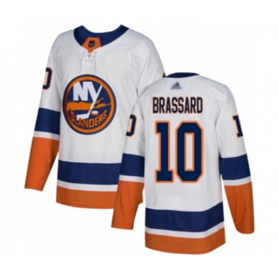 >Men's New York Islanders #10 Derick Brassard Authentic White Away Hockey Jersey