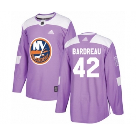 >Men's New York Islanders #42 Cole Bardreau Authentic Purple Fights Cancer Practice Hockey Jersey