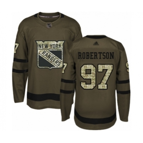 >Men's New York Rangers #97 Matthew Robertson Authentic Green Salute to Service Hockey Jersey