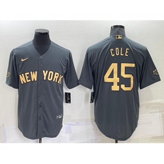 Men's New York Yankees #45 Gerrit Cole Grey 2022 All Star Stitched Cool Base Nike Jersey