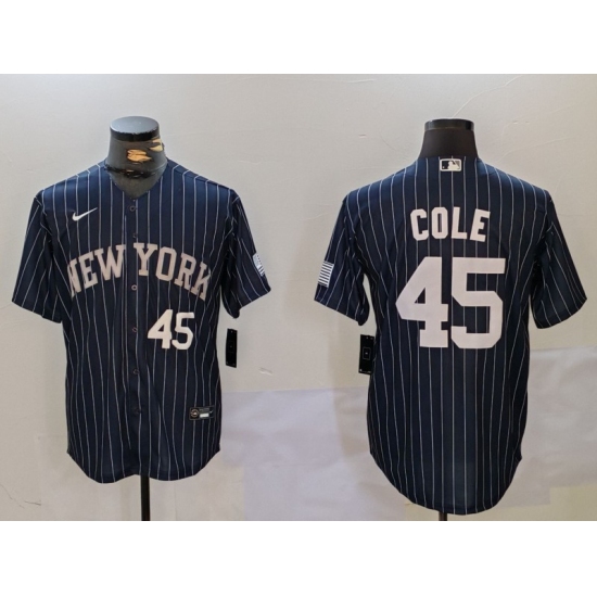 Men's New York Yankees #45 Gerrit Cole Navy Pinstripe Fashion Cool Base Jerseys