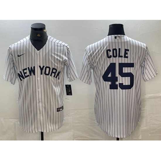>Men's New York Yankees #45 Gerrit Cole White 2024 Cool Base Stitched Jerseys