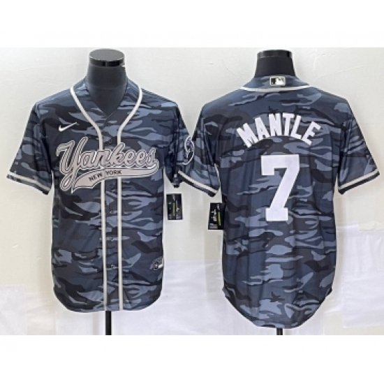 Men's New York Yankees #7 Mickey Mantle Number Grey Camo Cool Base Stitched Baseball Jersey