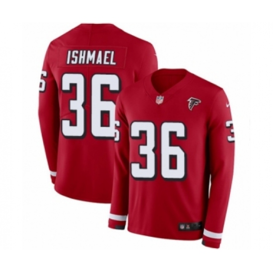 >Men's Nike Atlanta Falcons #36 Kemal Ishmael Limited Red Therma Long Sleeve NFL Jersey
