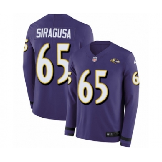 >Men's Nike Baltimore Ravens #65 Nico Siragusa Limited Purple Therma Long Sleeve NFL Jersey
