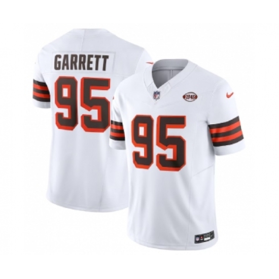 >Men's Nike Cleveland Browns #95 Myles Garrett White 2023 F.U.S.E. 1946 Collection Vapor Untouchable Limited Football Stitched Jersey