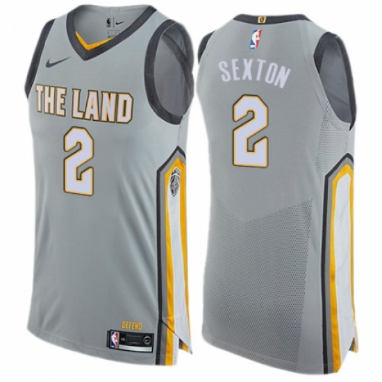 >Men's Nike Cleveland Cavaliers #2 Collin Sexton Authentic Gray NBA Jersey - City Edition