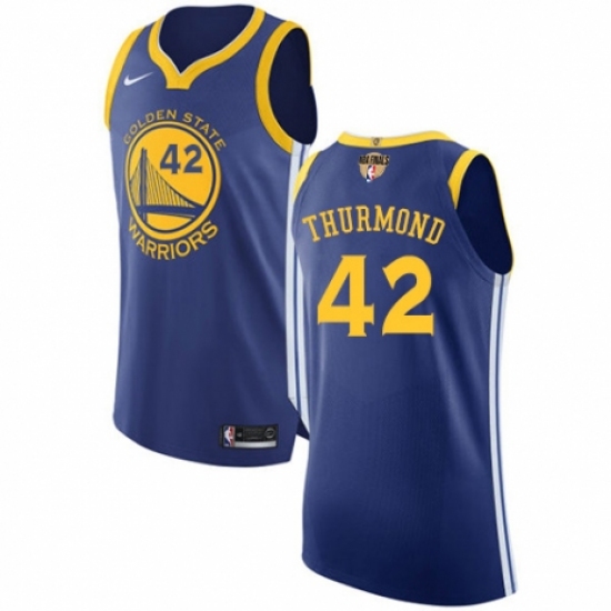 >Men's Nike Golden State Warriors #42 Nate Thurmond Authentic Royal Blue Road 2018 NBA Finals Bound NBA Jersey - Icon Edition