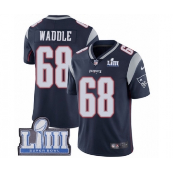 Men's Nike New England Patriots #68 LaAdrian Waddle Navy Blue Team Color Vapor Untouchable Limited Player Super Bowl LIII Bound NFL Jersey