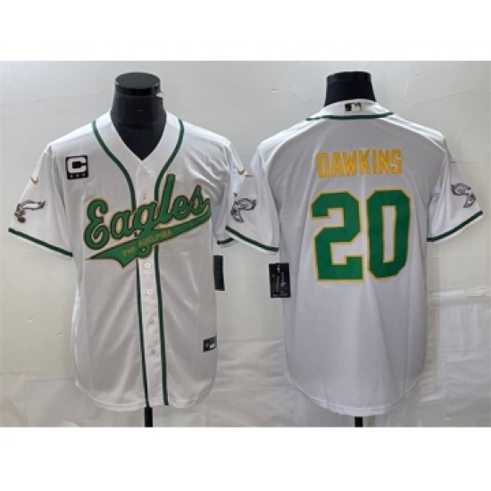 Men's Nike Philadelphia Eagles #20 Brian Dawkins White Gold C Cool Base Baseball Stitched Jersey
