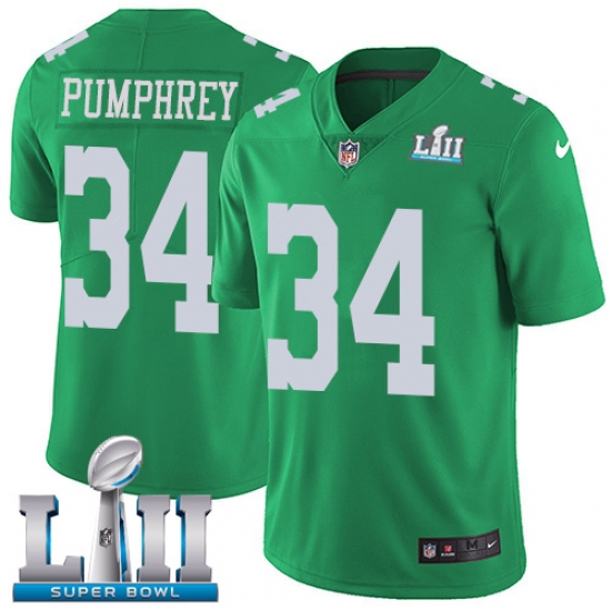 Men's Nike Philadelphia Eagles #34 Donnel Pumphrey Limited Green Rush Vapor Untouchable Super Bowl LII NFL Jersey